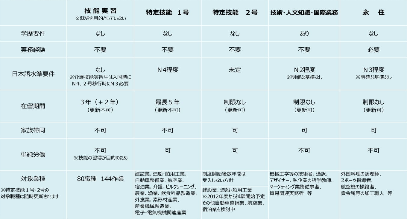 | ③ 在留資格を得るとすぐ入国できる | 技能実習生の場合、入国までに認可を得る必要があるため約8ヶ月~9ヶ月かかります。しかし特定技能の場合、試験に合格していれば即戦力として雇うことが可能です。 | |